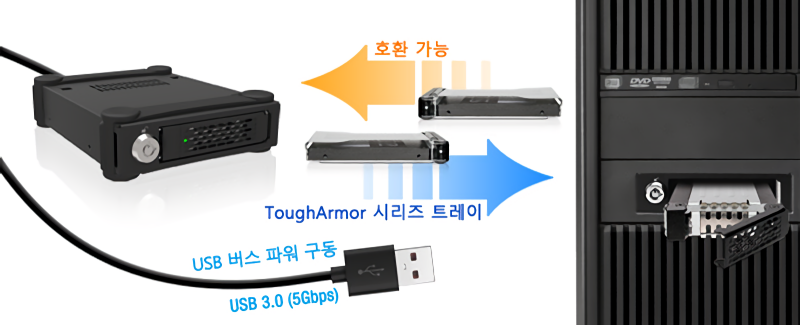 이글 훅 (Eagle-hook) 잠금 시스템 및 2 단식 키 잠금 기능으로 인클로저 내에서 드라이브 보안 강화