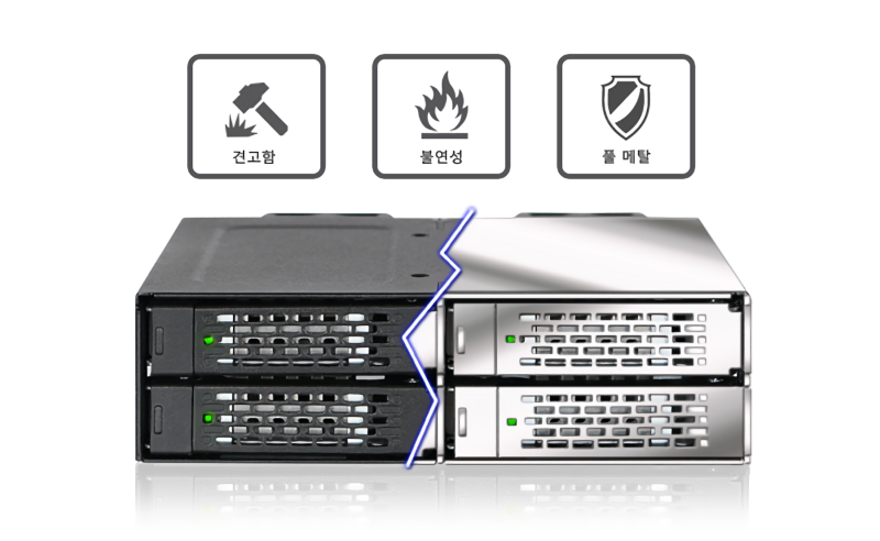 | • | 이글 훅 (Eagle-hook) 트레이 래치는 드라이브 트레이를 인클로저 내부에 안전하게 고정 |