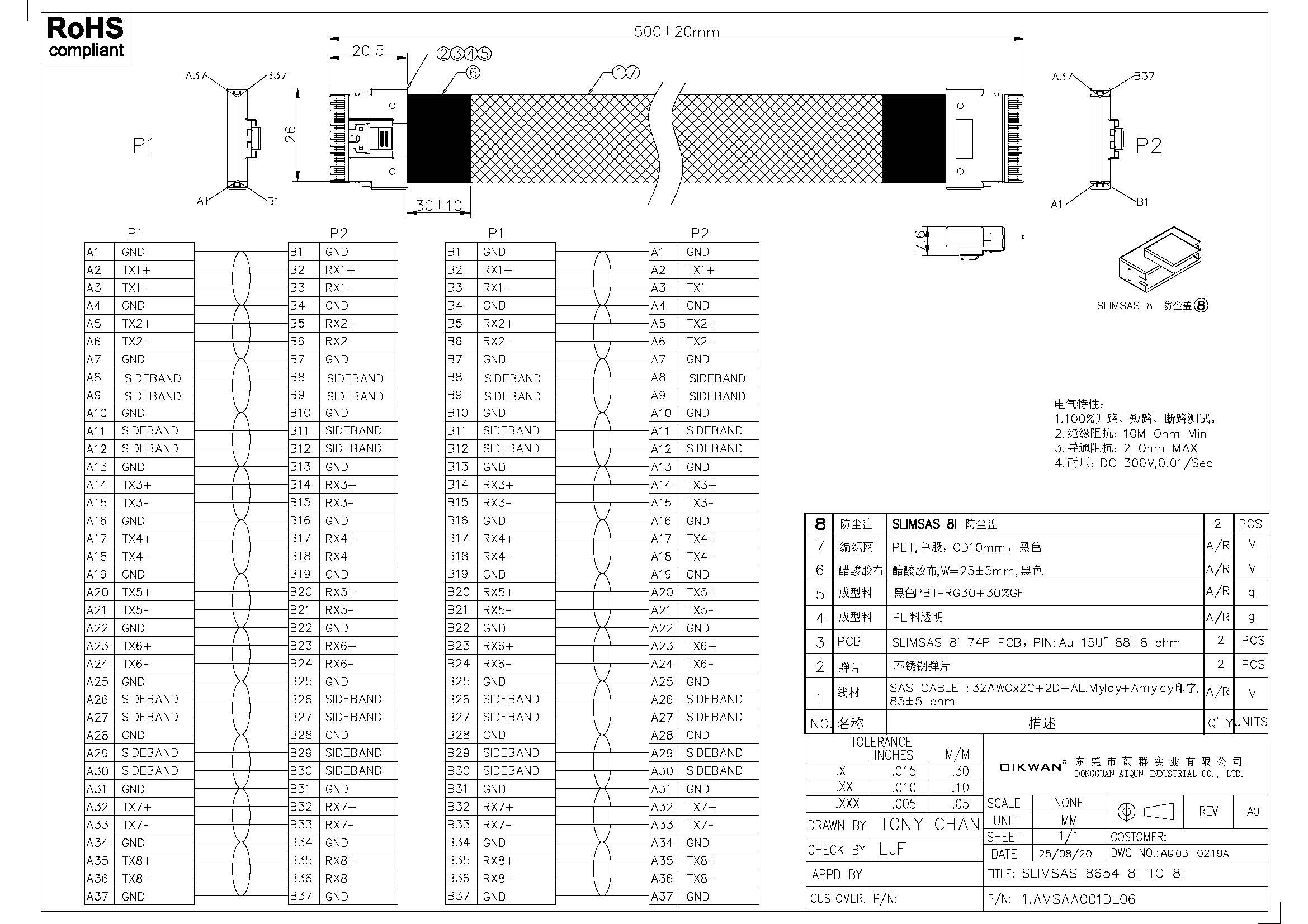 | 케이블 유형: | SlimSAS 8i SFF-8654 to SlimSAS 8i SFF-8654 |