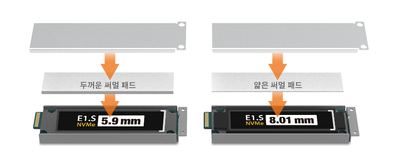 • | 5.9mm 또는 8.01mm E1.S SSD를 9.5mm E1.S로 변환 |