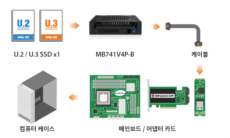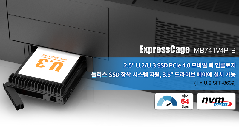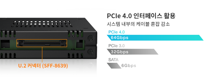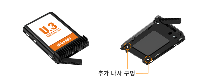 1 x U.2 SFF-8639, SFF-9402 Rev 1.1 기준 핀 배열 (Tri-mode HBA/RAID 카드 호환 가능) |
