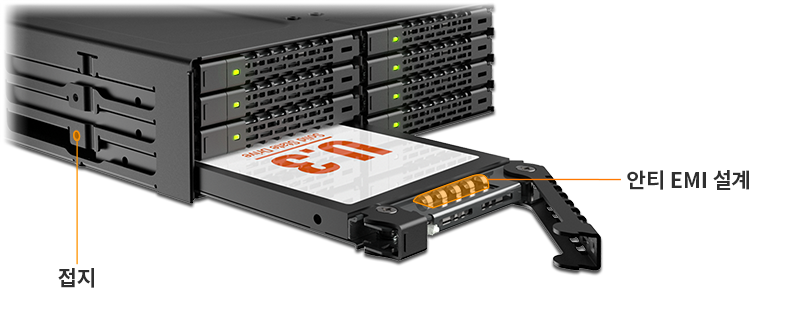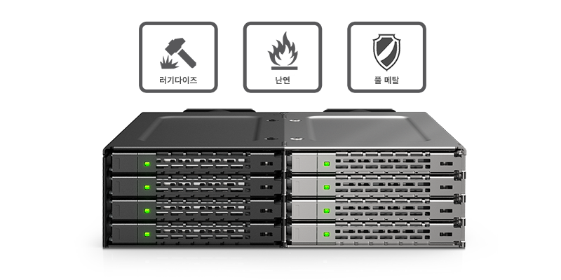 | • | 전면 LED 인디케이터로 각 드라이브의 전원 및 액세스 상태 표시 |