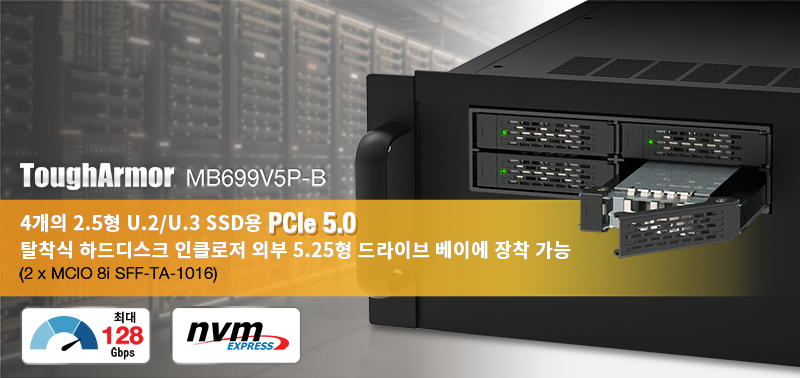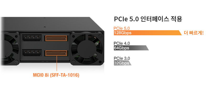 • | PCIe 5.0 지원, SSD당 최대 128Gbps의 전송 속도 제공 |