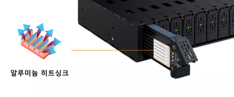 알루미늄 드라이브 트레이는 SSD에서 발생하는 열을 방출하는 히트싱크 역할함 |