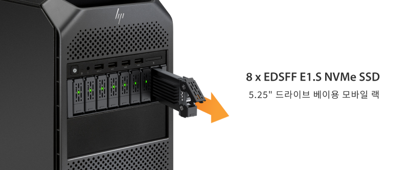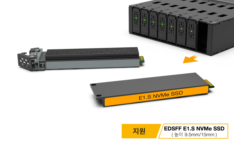 8x E1.S (EDSFF) NVMe SSD 설치 (높이 5.9mm/15mm)