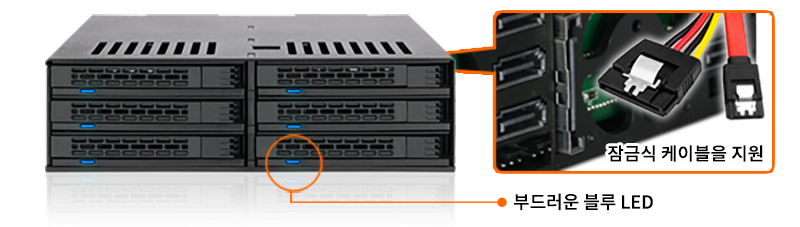 | • | 각 베이에 개별 블루 LED 표시등 탑재 |