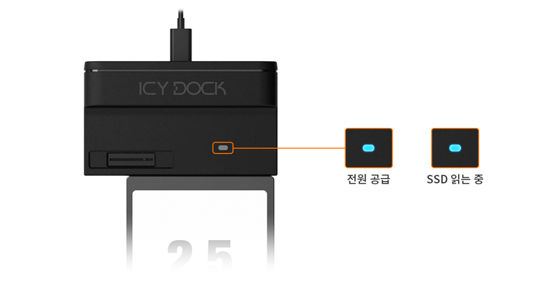 주의: ICY DOCK 본 제품과 함께 제공되는 USB 케이블을 사용하시는지 확인하십시오. 동일한 사양 케이블로 사용할 경우 케이블을 교체하여 문제가 해결되었는지 확인하십시오.
