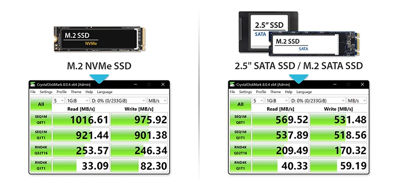| 호환되는 드라이브 유형 : | 1 x 2.5” SATA SSD/HDD 또는 1 x M.2 NVMe/SATA SSD |