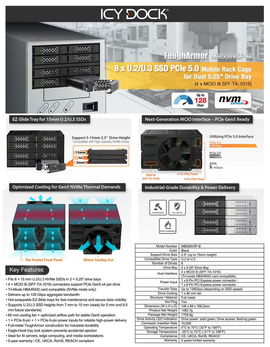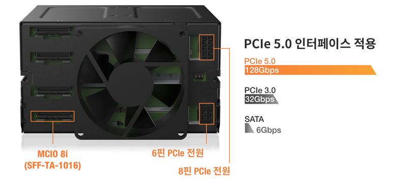 | • | 80 mm 냉각 팬과 최적화된 공기 흐름 설계로 PCIe Gen5 안정적 동작 |