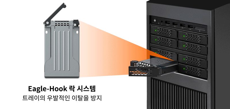 | • | Eagle-Hook 트레이 잠금 시스템으로 오작동에 의한 이탈 방지 |