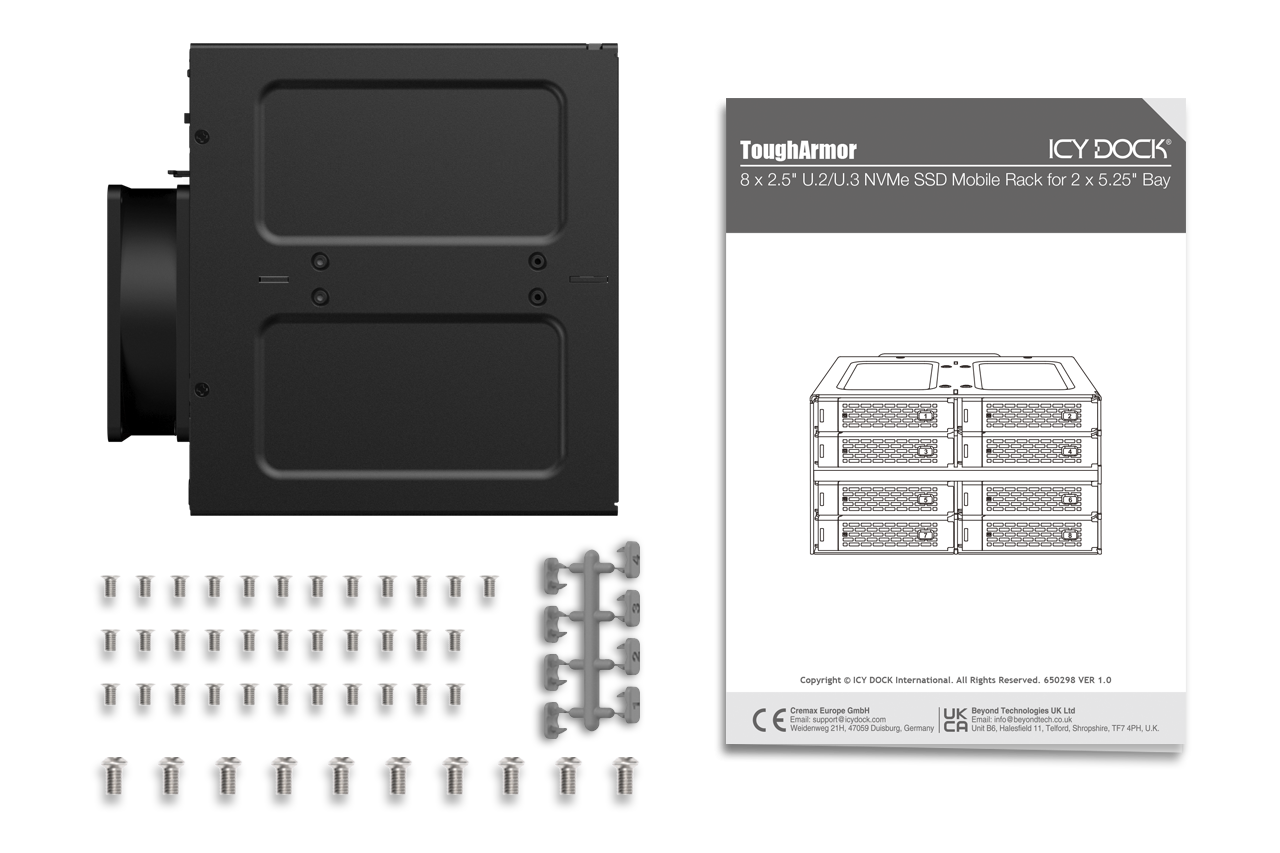 | • | 2 × 5.25" 드라이브 베이에 15 mm U.2/U.3 NVMe SSD 최대 8개 장착 가능 |