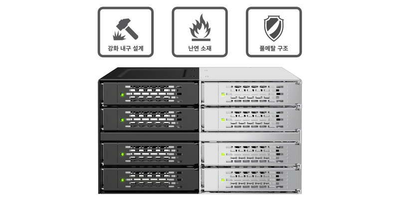 A: 당사에서 사용하는 냉각 팬은 드라이브 인클로저와 함께 충분한 테스트를 거쳐 정상적인 작동과(일부 모델의 경우) 팬 속도 제어 기능을 지원하도록 설계되었습니다. 따라서 최상의 성능을 위해 기본 제공 팬을 사용하는 것을 권장합니다. 다만, 모든 환경에 동일하게 적용되기 어려운 점을 고려하여, 서드파티 팬을 사용하더라도 보증은 유지됩니다. 단, 서드파티 팬으로 인해 장치에 전기적 손상이 발생한 경우에는 보증이 무효화될 수 있습니다.