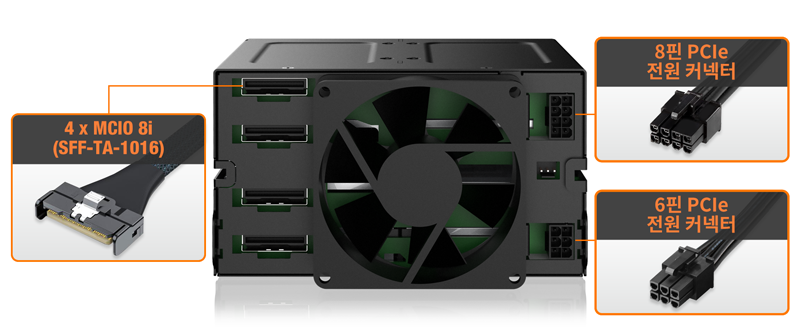 | 호스트 인터페이스: | 4 x MCIO 8i (SFF-TA-1016) (Tri-mode HBA / RAID 카드 호환) |