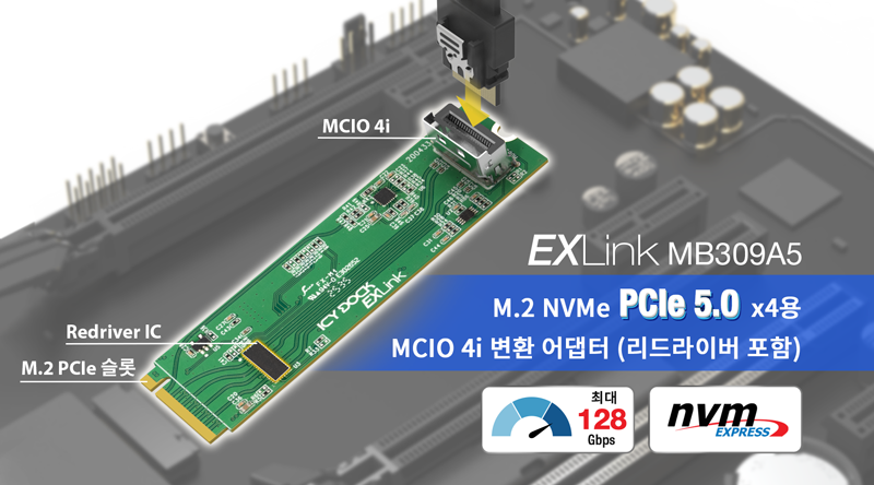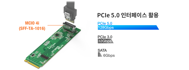 | • | M.2 NVMe(PCIe Gen5 x4) 슬롯을 MCIO 4i 출력으로 변환 |