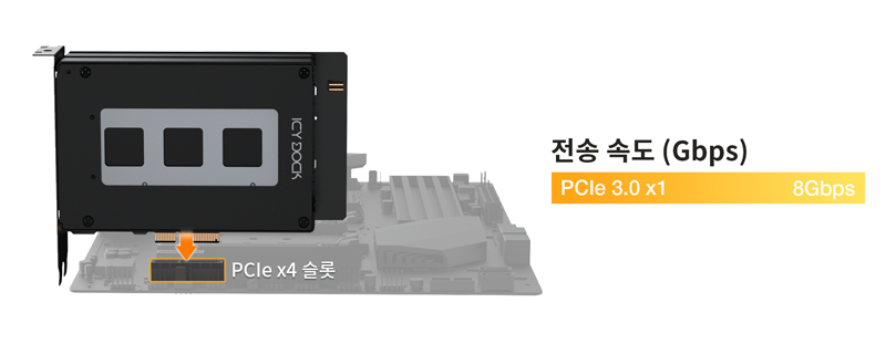 | • | 전원과 데이터를 동시에 제공하는 PCIe x4 인터페이스로 추가 케이블 불필요 |