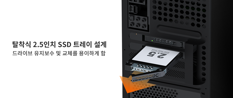 | • | 2 × 2.5" SATA SSD/HDD 장착 가능 (최대 9.5mm 높이 지원) |
