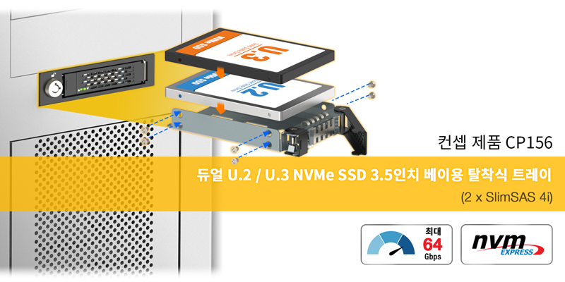 | • | 단일 분리형 트레이에 7mm U.2/U.3 NVMe SSD 2개 장착 가능 |
