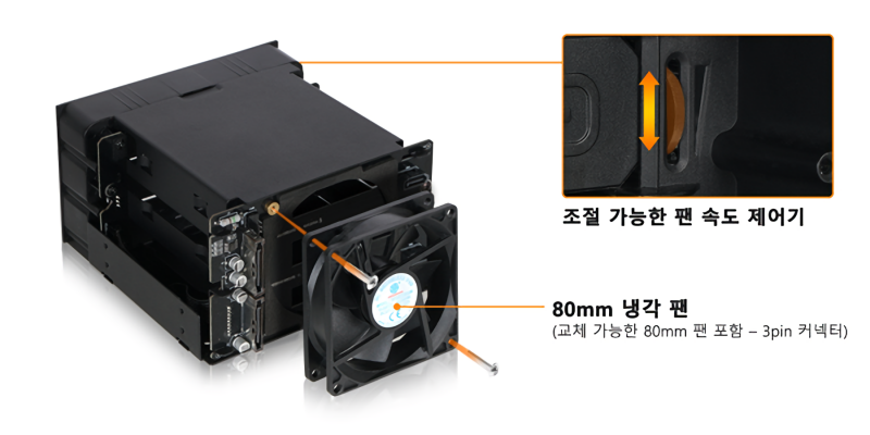 5.25" 트레이를 HDD 저장공간으로 활용하려는 사용자에게 최적의 제품입니다. 미들타워~서버급 케이스에 적합하며, 다수의 저장장치 장착과 유지보수에 편리합니다. SATA 전원 포함 커넥터와 핫스왑, 후면 80mm 팬 장착을 위한 PCB 타공도 지원합니다.