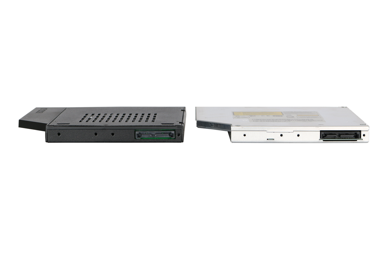 12.7mm 슬림형 ODD 베이에서 1x 5mm ~ 9.5mm 높이 2.5" SATA HDD/SSD 장착